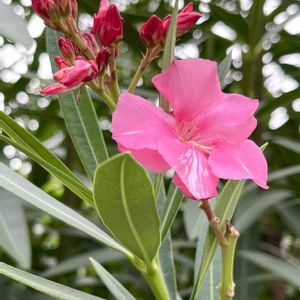 🌸キョウチクトウ(夾竹桃) 綺麗な花ですが毒性は青酸カリよりも強いとされ、誤食は大変危険です。また、生木を燃やした煙も有毒です。 ⚫︎キョウチクトウ科 キョウチクトウ属 ⚫︎原産 インド ⚫︎花期 5月〜10月