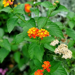 西側出窓下花壇 毎年恒例の、ランタナ七変化 ❁オレンジ系が咲き出しました。 トゲがあるし、実にも毒が有り⚠️危険植物です。 可愛らしいので、 小さなお子様達が、 口にしたら大変❗️ 早め早めにカットして実を落とさないようにしてましたが、 今年は南側のランタナも できる限りカットして無くしてます…枝が出てきたらカットを、繰り返してます。 🐈⬛🐈️にも良く無いので ❁。🧡可哀想だけどカットしてます。 カットした分殖えます😮💨😩😵💫 根元が、丈夫で抜けません。💦 すでに、実がついてますよ。 🤳パシャのあと、 カットしました。