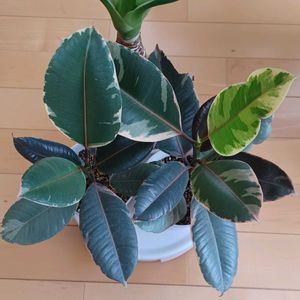 グレーな謎フィカスのその後… どう? どう思う?? あ~ティネケかぁ~?と思っちゃってたけど… 光当たり具合によってグレーじゃない?? 新しい葉っぱ展開する時キズ付けちゃったみたいで形悪いけど…美しくない??😍 暗い色の葉っぱはおそらく店頭で出た葉っぱ ということは…明るさによって葉の色が変わりやすいってコト ウフフ…楽しくなってきた🎶
