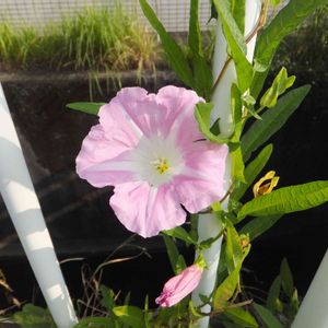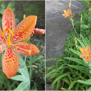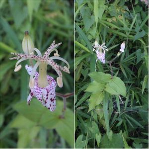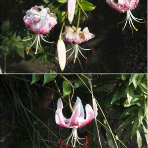 アメリカフヨウと同じところに咲いているカノコユリ。朝日を浴びて綺麗。