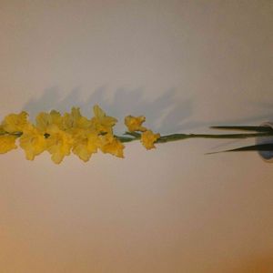雨で折れ曲がっていたグラジオラスを花瓶に挿していたら、満開になりました。