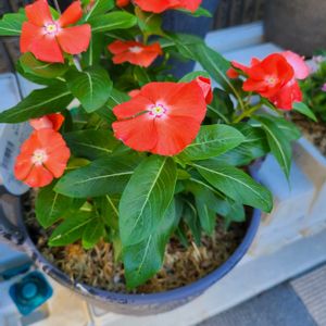 日々草(ビンカ)💠 今更ですが夏のお花をお迎えしました😅 お迎えした次の日から雨続き☔ 今日はやっと🌥 お日さま出ておいで〜🙋✨ これから切り戻しをします✂ 盛りもりになるといいなぁ😊