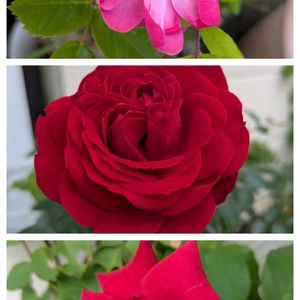 雨が上がり、秋晴れになりましたが、北風が強く、夕方には急に肌寒くなりました💦つい2、3日前には30℃でしたが😓 ①ピースが綺麗に咲きました🌹春より色は少し薄めです💛 ②トゥルーブルームレッドキャプテン❤️鮮やかな赤で、よく咲いてくれます❣️ ③先日も投稿したシェエラザード🩷雨の中一気に咲いて、咲き進んでしまいました💦