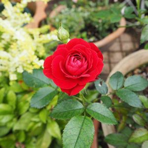 見切り品でお花なしでお迎えした レッドキャプテン ようやく1輪開花😆😍 真っ赤なバラ🌹 つぼみもいくつかあるので楽しみです✨