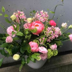 イースターのミュンヘン。 いつものフラワーショップです。 今日は特別変わった鉢は見つかりませんでしたが、ディスプレイには一際目を引くアレンジが飾ってありました。 どっしりと男性的なアレンジです。