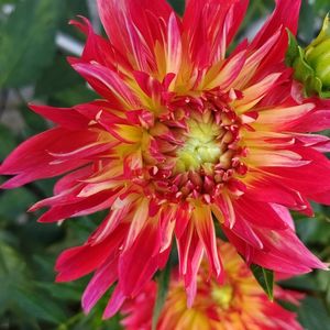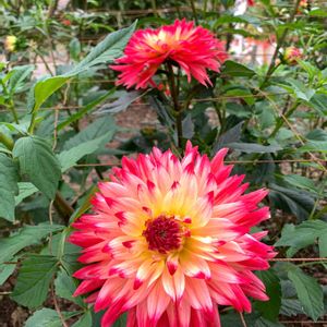 おはようございます😃 今日は天気良さそうです☀️朝陽が見えます。 ダリア ペチカ咲き始めました😄赤を基調に黄色が混ざって移り変わって行きます、お気に入りのダリアです。