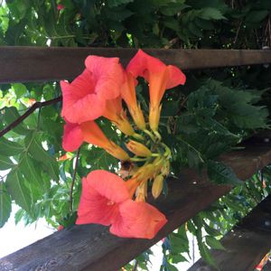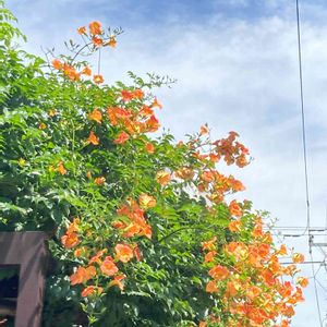 我が家のノウゼンカズラも、雨の中で、咲いてます🧡 新宅の道沿いに咲いて、まさに壁の花になってます⁉️ ダンスが踊れず、ウイーンのホーフブルグ宮殿の 壁の花になってた旅行を思い出しました✈️