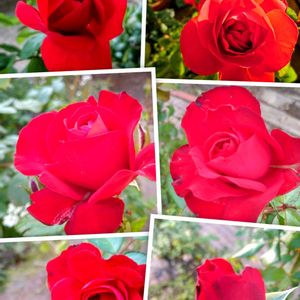 今日のお花 赤い薔薇 過去picです🌹 1番最高に咲いた時のミニ薔薇❤️ これ☝️一本なんです😂 玄関先で咲き誇っていました😊 水滴のあるこの子もコラージュしてみました😊