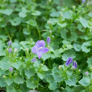 数日前から咲き始めたベルフラワー 年越し2年目の株 こんもり広がって大きく育った 冬場も茂っていて葉も小さく可愛いので 庭が寂しくならずに気に入っている 今年は蕾がたくさん上がって良く咲きそう 午前中はベランダの物干しに寒冷紗を下げたり一作業 ボチボチ日射角が高く日中ベランダに直射が入る 観葉は焼けてしまうんで予防 天井にマルチや寒冷紗を下げる フックをつける工事をして貰おうと頼んでいるけど 連休前でなかなか連絡がない 作業自体はそんなに大仕事ではないけど 外壁は保証の問題もあるんで自分では手をつけられない 今日は家事仕事が多いけども明日は雨予報 庭や屋上の作業はやらないと
