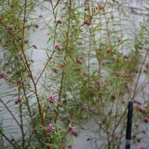 雨の前ワックスフラワーが一輪 大きい木の方も開花が始まった ある程度は剪定がてら切り花利用 50cmもない苗を植えてからはや3年 2.5m程度に育ち枝張りを高くするため伸ばしていた 低い位置の枝を払い高めの位置に分枝したので 切り花に使いつつ剪定して樹形を整える 寒波で雪が乗ったり凍ったりしているが 毎年傷みもせずよく咲く 蕾が一面についててそのまま咲かせても 面白い木になると思う 庭ではグレビレアやリューカデンドロンが咲いてて 一緒に切って飾るのも良い ネイティブの花が咲く時期である 高枝切り鋏が役に立つ 最後の冷え込みになりそうな夜