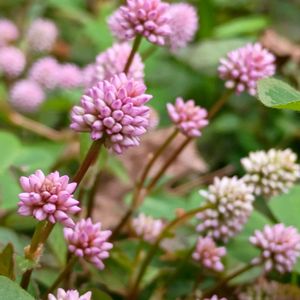 💕ヒメツルソバ(姫蔓蕎麦) 小さな花が集まる金平糖のような形です。最初はピンクで、だんだんと色が抜けて白くなります。 ⚫︎タデ科 イヌタデ属 ⚫︎原産 ヒマラヤ ⚫︎花期 4月〜12月