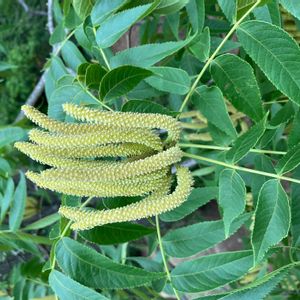 小石川植物園の散策 💛野胡桃(ノグルミ)💛 クルミ科ノグルミ属 落葉高木 雌性先熟型 今年出た枝先に、雌花序が中央に直立して、その周りに雄花序が囲っている