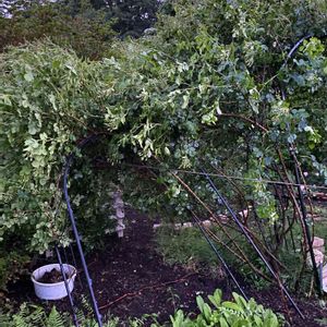 悲しい事が起こりました:;(∩´﹏`∩);: 昨日の嵐に薔薇のアーチが倒れてしまいました😭もっと強化しておくべきでした‼️ 🙏2枚投稿してしまったので1枚削除しました🙏