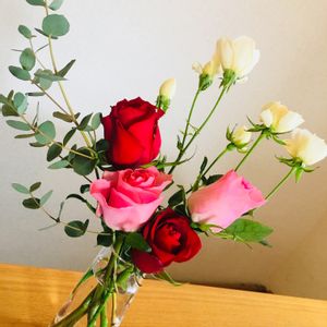 バラとスイトピーです〜スイトピーのひげ?って可愛いですよねー💕