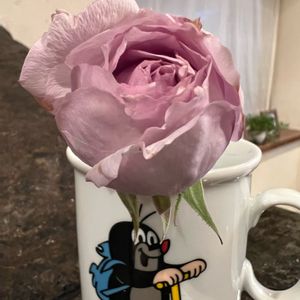 こらぁ、一番似合わないお前がなにしてるンだぁ❣️ 撮影中にふくちゃんが、こともあろうにルシファーの一番花を咥えて逃げました(傷ついたらごめんね)。 外芽の意味が判らず、テキトーに剪定したら変なところからお花が咲きました。奥のガブリエルに比べると、半分くらいの大きさで紫色が濃いようです。 後ろの飯台は乾かしている最中。生活感丸出しで、ごめんね、うちの天使たち。