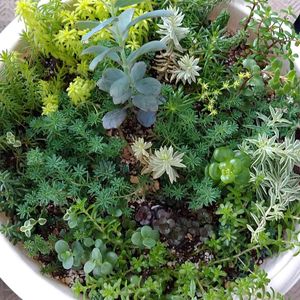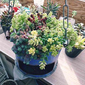 メルカリでセダムセットを狩って 初めて寄せ植えしたやつ。 次はちまちま寄せしてみたいなぁ。