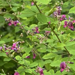 💜萩の花が咲きました!🌿 昨年秋にHCからお迎えして… 咲き終えてから…暑さで枝は全部枯れてしまい根だけに剪定しておりました! 春先からは、葉や枝が沢山伸びて、又頑張って成長して花を咲かせてくれました💫🙆 たくましさに元気頂きました