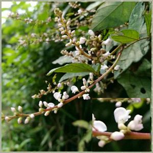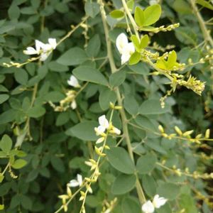 白い萩のような? これだけ咲いてました。 葉は、痛んでいます。 どうしたんだろう…😓