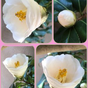 春ウララ☆彡♪♪〜 花日和🌸🌼💓❣️ 我が家のお花達も 芽吹き急いでいます♪〜 挿木の白椿! 開き始めました 薄っすらピンクぽくて そこが可愛くて 大好きなのよ😍💓❣️ *無修正です。
