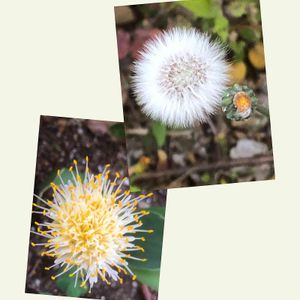 先だって放置畑にポツリ 真っ白い綿毛を見つけました 殺風景な初冬の畑に凄く目立って 美しくて可愛くて‼️ 思わず駆け出しました ブタナ(タンポポモドキ)の様ですね マユハケオモトも負けずに モフモフ!頬に紅を指すには どちらがいいかしらウフフ