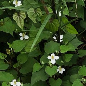 厄介者にされるドクダミ! 私はこの十文字の真っ白シロのお花が 大好きです💕🤍💖🤍💓❣️ 匂いも嫌われる方が多いですが 私はこの香りは魔法使いのように 思えてならないのです お茶🍵に!化粧水!万能薬!! 効能は、マシマシです✌️↗️😀‼️ 毒や傷の痛みを抑える効果を持つ事から 毒痛み"→ドクダミと呼ばれるように なったそうです。 白い十文字の花は葉が変化した総苞片で 花は中心の突出した黄色い部分のみです。 但し便宜上この白い総苞片を花と 呼んでいます。とGoogle先生に 教わりました👍🤗!! 花言葉は、「白い追憶」 「野生」 納得ですね⭕️👌✌️😊‼️ 大好きな理由がわかった気がしました 十文字の白いお花に出逢うと 何故か幼い頃を思い出して 畦道や野っ原を駆けずり回った事!! 野の花を沢山抱えて色んな遊びも 思い出します。 まさに!野生っ子の追憶が 走馬灯のように甦ってきました😀💖