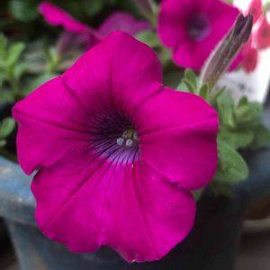 サフィニア、パープルミニ🩷💜💓❣️ 綺麗なショッキングピンク🩷 花柄も大きくて玄関先が 明るくなった様で梅雨☔️空にも 負けていないです✌️💞💜🩷😀