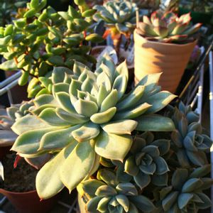 【エケベリア属 ムーンフェアリー】 Echeveria 'Moon Fairy' 別名 アルフレッド ムーンペリー 花うらら×アルビカンスの交配種 その名の通り、冴え座えとした 蒼白い月を思わすような アイスグリーン💙💚 紅葉すると葉の縁がピンクに💗 「プリドニス(花うらら)とアルビガンス の交配種 プリドニスらしい黄色い花と、アルビカンスらしい透明感のある葉がチャームポイント 韓国から入ってきたムーンフェアリー 'Moon Fairy' は、このアルフレッドと同種という報告があり 他にもシャンペーンも入ってるのでは?との情報も」 ☆Source☆ 【多肉植物専門店 ビスタ】さん https://pukubook.jp/detail/Echeveria_Alfred ふるさと納税の返礼品 【唐津市 吉原園芸】さん https://www.rakuten.ne.jp/gold/yoshiharagarden/