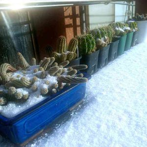 初積雪。ほぼ在来種のサボテン達はお外で耐えさせます。