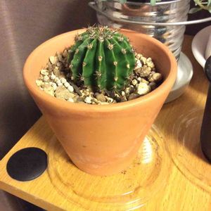 一昨日 ダイソーへ行った時に こっそり買ったサボテンくん。 短毛丸と書いてましたが たぶん大豪丸だとおもいます。 旦那には内緒で買いましたが いつかバレる(笑) 昨日金鯱さんのついでに 植え替えましたが 元々入ってた土が 土と木屑みたいなもので かなりがっちりかためられてて 根の先が見えるくらいまでしか崩せず 水で揉みほぐそうとしても がっちりしすぎて解けない... とりあえず そのまま植え替えてみました(´・ω・`) これで元気がなくなりそうなら もう1回ひっくり返して 根元からバッサリ行くしか_(:3 」∠)_