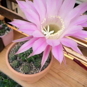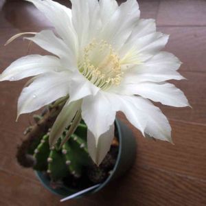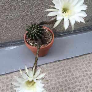 去年友人から頂いたサボテンに花が2つ咲きました❗おっきな花が咲いて感激❇