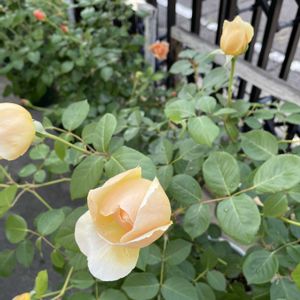 雨が降り始めました。(🥲) いおりさんの隣にジュードジオブスキュアさんをお迎え✨♡ ホームセンターにうかつに行ってしまうと自制心が効きませんね💦😅 1番目の花だからか大きくて イメージは小ぶりな……だと思っていたのでいい意味で裏切られた感じです。 アプリコットカラーとコロンとしたお姿が癒しです。