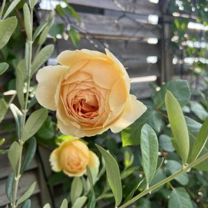 我が家のバラ開花10番目はジュードジオブスキュア。 カップ咲き、アプリコット色、フルーツの強香がとーってもお気に入りのバラです(^^)♡