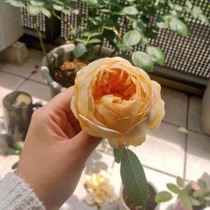 🌹ジュードジオブスキュア🌹 お迎えした時は見えるか見えないか程の小さい蕾がすくすく育ち、やっと開花しました🌹💕 うちにはいなかった優しいオレンジのお色🧡香りが「シトラス香の混じったグアバと、甘口の白ワインを思わせる香り」らしいのですが私自身、お酒飲まないので白ワインの香りもわからず笑。 簡単に表現するとフルーツの香りが混じったティー香のように書いてありました🤣 どのような表現でも🤣とっても素敵な香りでとても幸せな気分になれました🥰✨