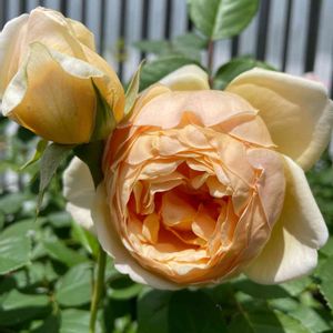 イングリッシュローズ、ジュードジオブスキュアさん2番花✨ ジュードのシュートにわっさわさや😆 →大阪のオバちゃんのダジャレでした😅 甘くて美味しそうな香りがたまりません❣️ 私のお気に入りベスト3の一つ❤️