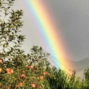 もう一枚投稿させていただきます。 こんなハッキリした🌈見たの初めてかも!👀感動しました😍 今日の午後に見ました。 りんご🍎もうすぐ収穫です