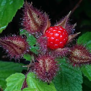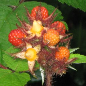エビガライチゴと教えて頂きました❤️ 近くの山の林道にて、 木イチゴで良いのかなあ、美味しい実は鳥さんに😃