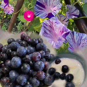 (。•◡•。)⸝ꕤオハヨーゴザイマスꕤ ラジオ体操で ご自宅で採れた 「ブルーベリー」💜 頂いちゃいました(⁎˃ᴗ˂⁎)♡ 土木で苗がら配られ育てたのだとか…👍 少し酸っぱいからジャムにでもしてねって…言われたけれど私には十分甘い♡ ヨーグルトに入れて蜂蜜入れたら尚 美味しいので このまま食べたいと思います♡ 江戸風情は琉球朝顔と交配して 更に強くなったのだとか…育ててる男の方が 研究中❢ 2枚目…🩷ピンクの朝顔も 自然交配したのか…今朝はピンクに縞が入ってました❢ 3枚目4枚目 今朝の 公園までの川沿い遊歩道🚶 「ユリ」やビタミンカラーの「カンナ」🧡が咲いてました♡ もう7時過ぎたら外に居るのも暑くて🥵 何とか朝の連ドラ 途中 迄には家に戻りました♡ 毎日 熱中症のニュースが🥵💦 弱った身体には尚 危険⚠ ちゃんと食べて寝て…水分補給💧 今日も元気に過ごしたいですね♡