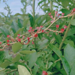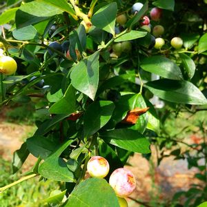 ブルーベリー ラビットアイ系 花言葉:「実りある人生」「知性」「知恵」 ツツジ科スノキ(コケモモ)属🌿落葉小低木 今年もブルーベリー狩りをしました😊🎶🌼6月に収穫する品種と8月に収穫する品種があるそうです。今の季節は耐暑性のあるラビットアイ系と思われます。未熟な実が赤いことからラビットアイの名前があります。何品種か混合で植えられており、味や大きさが違うようです。食べながら摘んで、1パックお持ち帰り🫐🎶猛暑の影響で一気に熟してしまうそうです💦