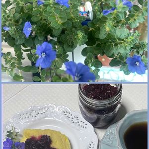 おはようこざいます☀️ 🏷️毎月2日はスヌーピーの日 🍀エボルブルズ ずっと咲いてる可愛いお花 ブルーベリー🫐ジャム出来ました。