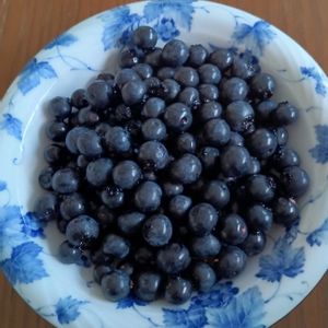 💜ブルーベリーの実💜🌳 リビングの南庭のブルーベリーが沢山実を付けました。 大分採らずに居たらこんなに収穫出来ました💜🌳
