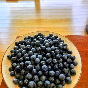 ブルーベリーティフブルー🫐 昨日多めに収穫しました。124グラム! ティフブルーとフロリダローズの2品種を1本ずつ鉢で育てており、これまでも何回か収穫していますが フロリダローズの方はほぼ終了。ティフブルーはまだ採れそうです。