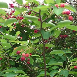 ジューンベリーが色づいて、ヒヨドリ🐦️が来てるのを発見✨食べたら甘かった🔴 ブラックベリーとブルーベリーも実の形が出来て来た🖤💜