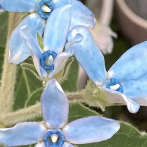 ☆庭のお花達☆ お昼頃から雨が降り出しましたー ❶❷ブルースター 今年は、茎が太くお花も大きいような気がします〜 この花色の🩵ブルーが好き! ❸ブルーベリーの実、楽しみです〜 ❹バラ・クィーンエリザベス 可愛い色の蕾が上がってきました! 我が家の🌹は、カクテル、ラブが終わり、レオナルドダヴィンチ、アイスバーグ、サマースノー、ニュードーンに続き、最後にクィーンエリザベスが彩ってくれます〜