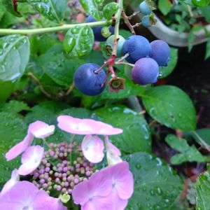我が家の庭も賑やかになってきました🫐🌸 ブルーベリーの実を少しですが、収穫出来ました🎶甘く美味しかったです🤩 紫陽花も段々と開花してます 6/4撮影