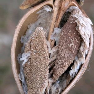 キリ 落ちた実の中は2室に分かれ、種がびっしり詰まっている🤎 ちょっと振ってみると、半透明の翼のある白い種が、バラバラと出て来た♬ 黄土色をした蕾はまだ固くて、柔らかそうなビロードのような毛が生えて、冬を過ごす🟠 成長の早いキリは、すくすくと育ち、冬空にそびえ立っている 木曜日は木🏷