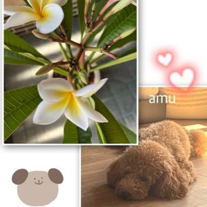 こんばんは🌙♡︎ʾʾ 11月11日ワンワンワンワン🐶🐾 今日🤳したプルメリアちゃん🍃とアムちゃん🐩 お昼寝中🤳(ღ′◡︎‵)💓 🏷ワンワン祭りに参加します🐾