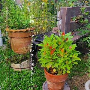 朝日を浴びる種からケイトウの切り戻し後の様子。 お花が小さくなってケーキ🎂のような感じになりました! 切り戻してから放置してましたが😅 上からナンテンが迫ってきてますΣ(´□`;) お隣はニチニチソウ モネさんの挿し芽。 タネがとりたいけどできるかなぁ🤔