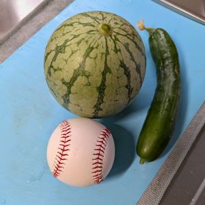 お早う御座います〜☔ 今朝の収穫は… 二階テラスのプランター栽培小玉スイカ🍉と🥒二番手のキュウリです‼️👏😃🎶 手のひらに乗る大きさ…ボールと比べてみました👍😃 甘くてとても美味しい〜〜 最高‼️育てる喜びを味わっています✌️🥰🎉🎊🎊🎊 最後の黄色小玉スイカは明日収穫かなあ〜ルンルン✨ 水槽では水草ホテイアオイが花盛り!! 涼やかな色合いに癒されてね〜🙋💞