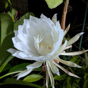 満開です〜〜👏🥰🎶🎉🎊 闇夜に咲く一夜限りの豪華絢爛月下美人ここに有り!! 二階テラスの月下美人… 香りが一階まで漂い〜ウットリ✌️🥰🎶 ずっと見ても飽きないわ〜 良く頑張ったね💪😍 お疲れ様でした✨ 今からすぼんで行くのね 切ないなあ〜 有難うね‼️ 皆さんも癒されてね〜🙋💞