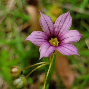 風に揺れていた草花 ピンク色のお花がゆらゆら!! 夕化粧 ユウゲショウ 庭石菖 ニワゼキショウ 瑠璃庭石菖 ルリニワゼキショウ 公園の片隅に見つけたおとぎの国!! 虫になった気分で!!